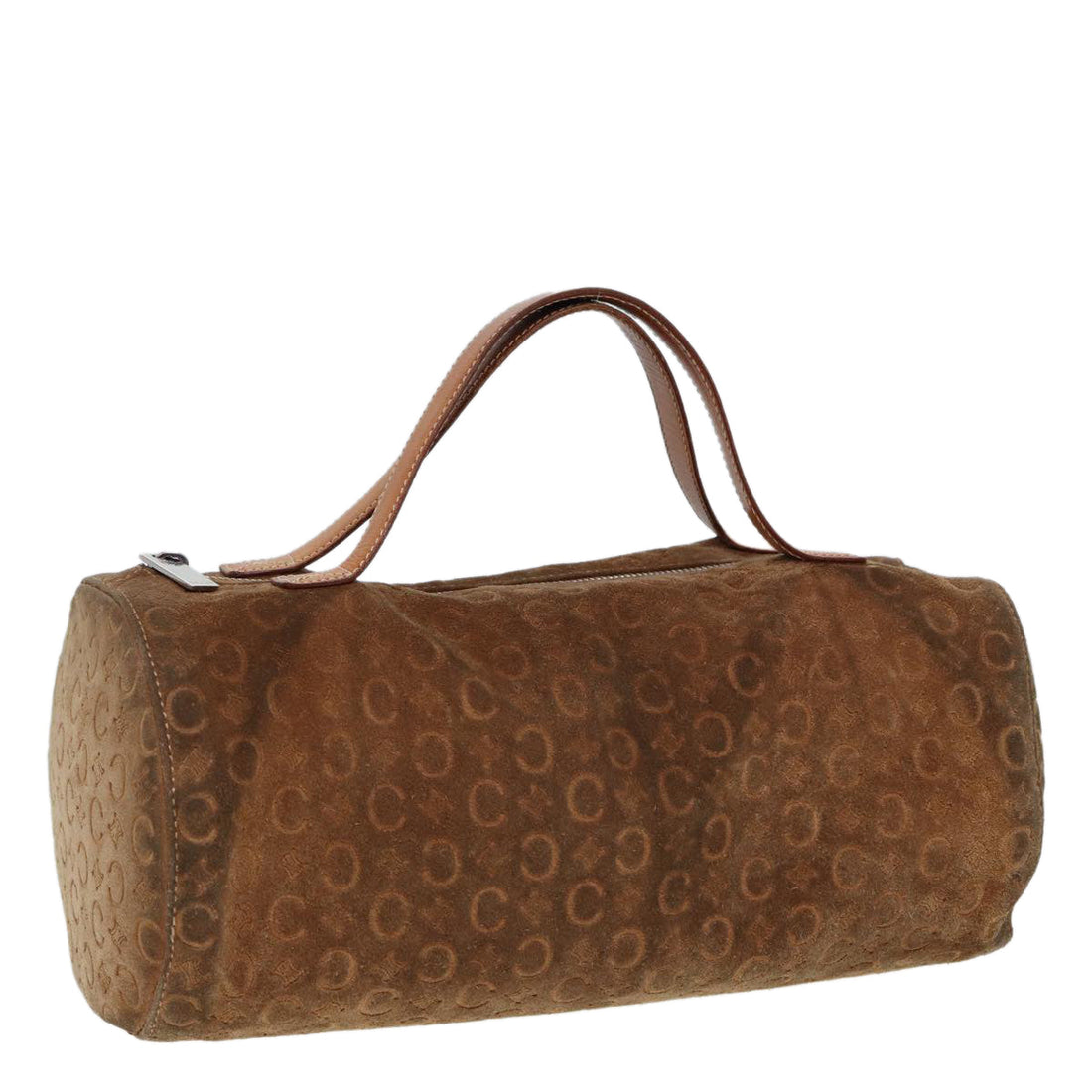 CELINE C Macadam Canvas Hand Bag Suede Cream Brown gold Auth 87002BRAND : CELINE Color...