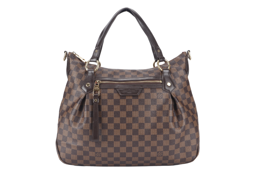 LOUIS VUITTON EVORA DAMIER EBENE CANVAS GOLD HARDWARE WITH STRAPS AND DUST COVER