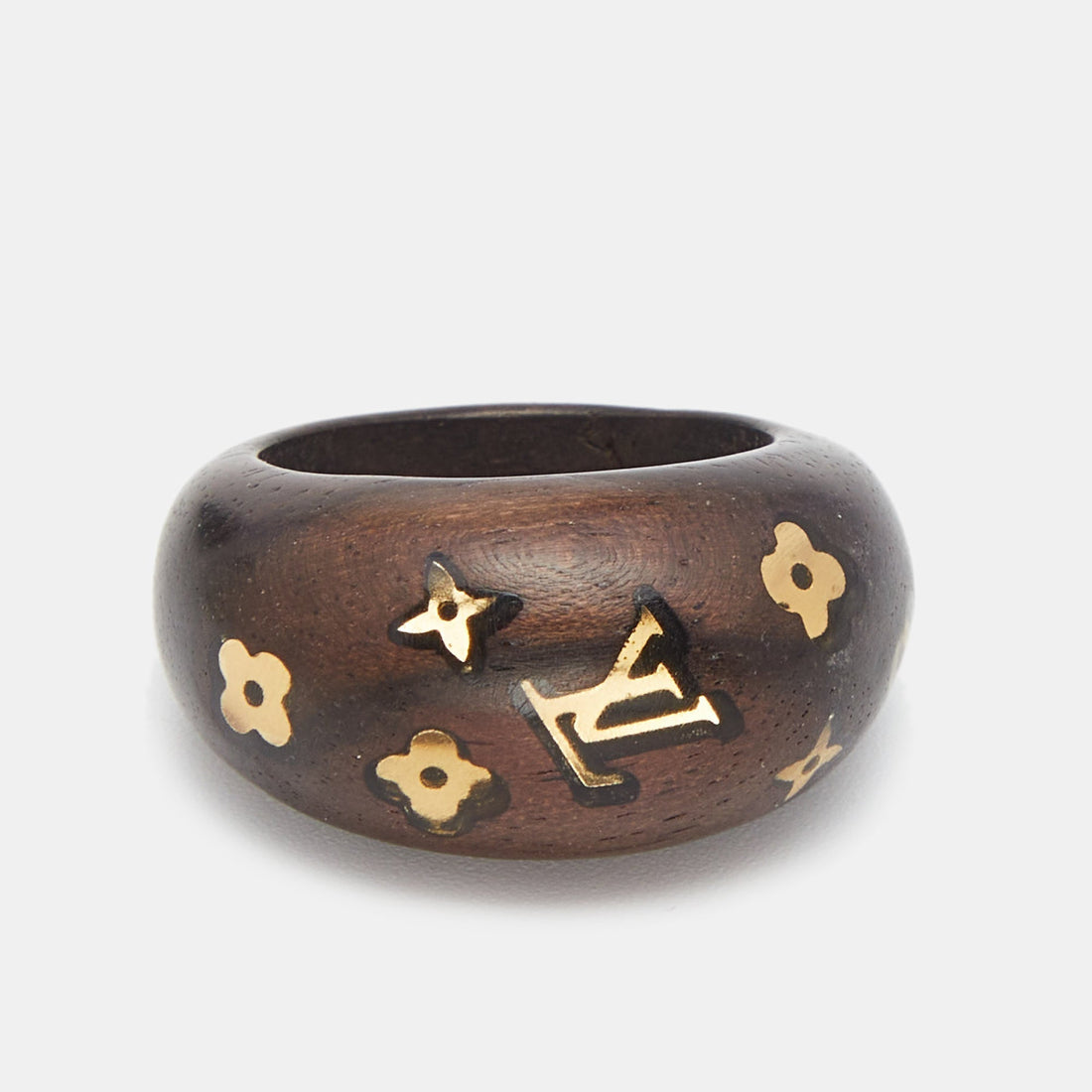 LOUIS VUITTON Gold Tone Monogram Wood Ring Size 56Complete your wooden accessory collection with this...