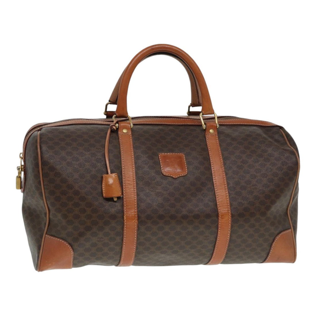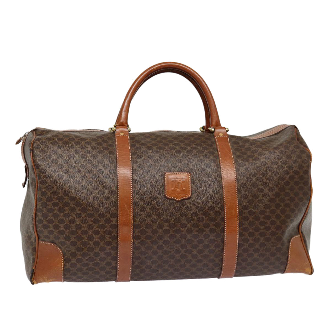 CELINE Macadam Canvas Boston Bag PVC Leather Brown Auth tb1092