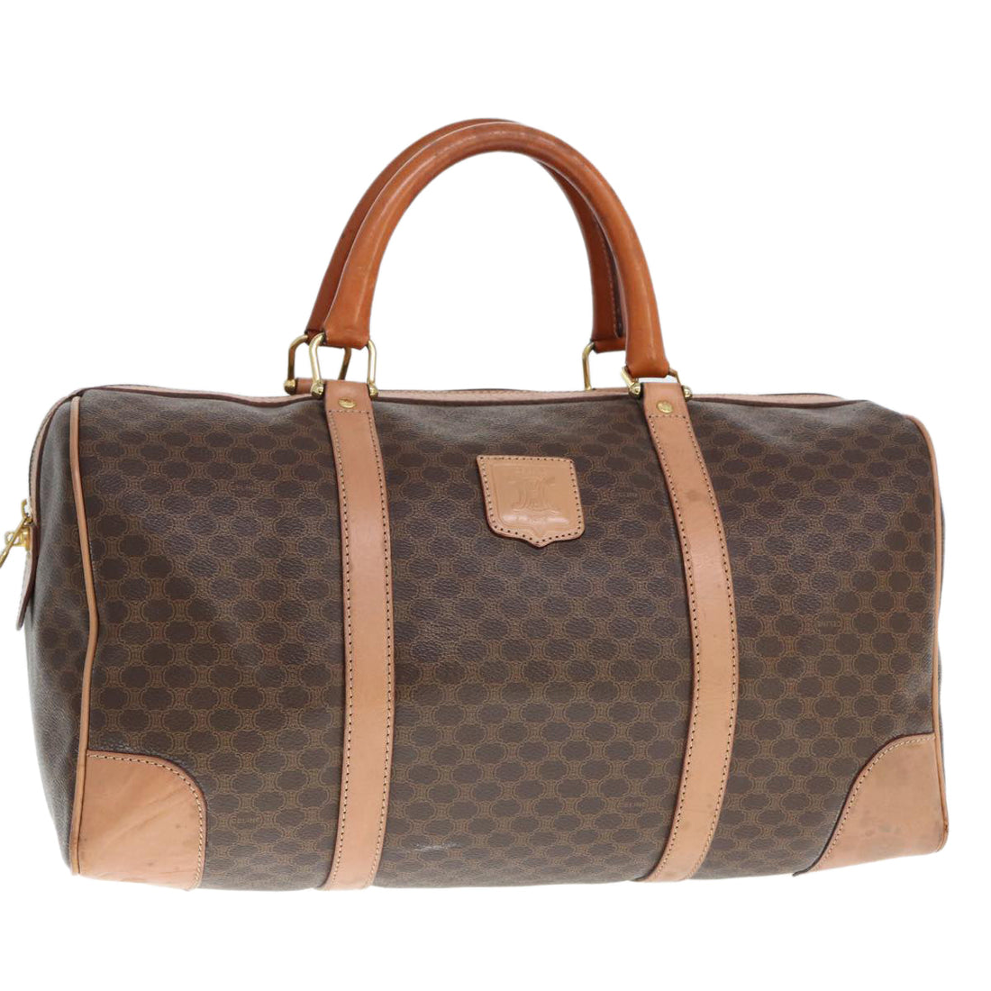 CELINE Macadam Canvas Boston Bag PVC Leather Brown Gold Auth ep5535