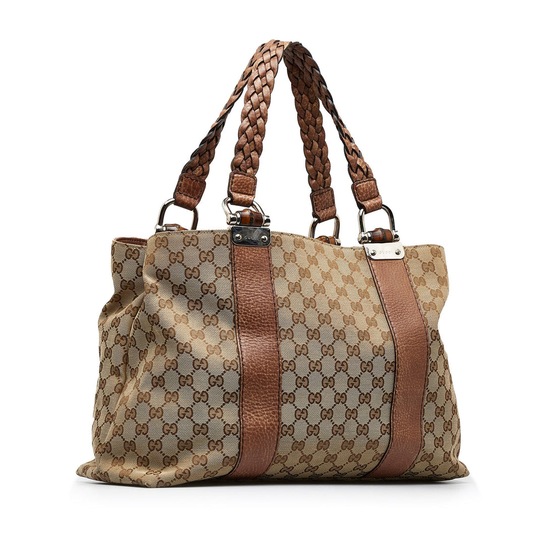 Tan Gucci Medium GG Canvas Bamboo Bar Tote