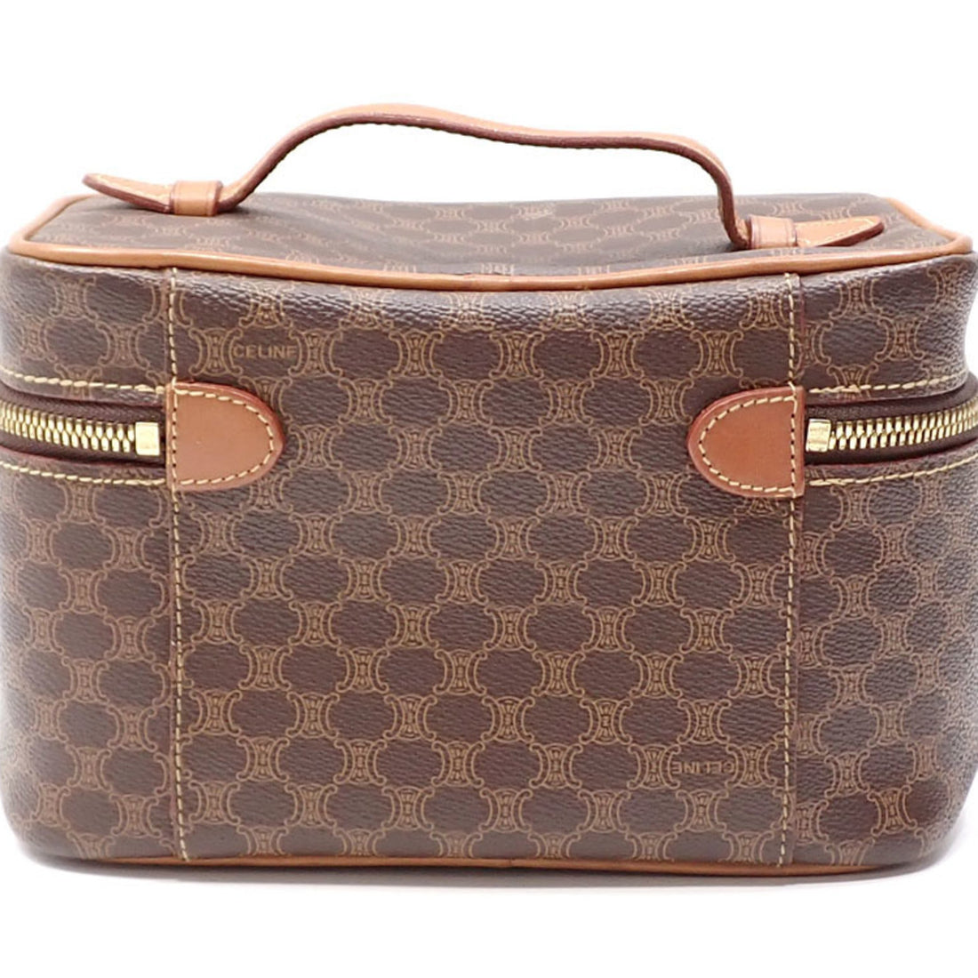 Celine Vanity Bag Women's Brown PVC Leather Macadam Pouch Makeup Hand