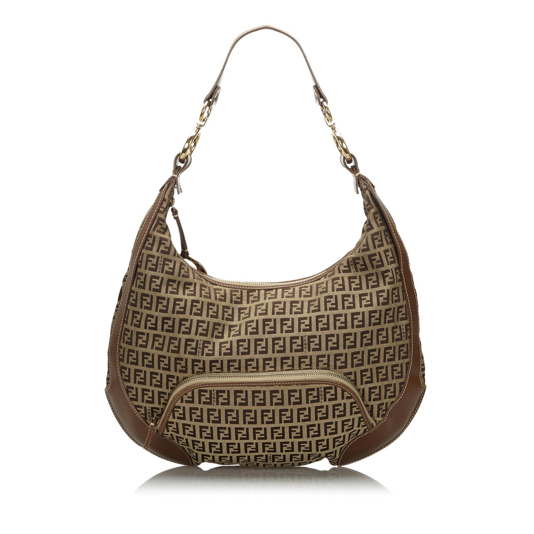 Fendi Brown Beige Canvas Fabric Zucchino Chef Hobo Bag Italy