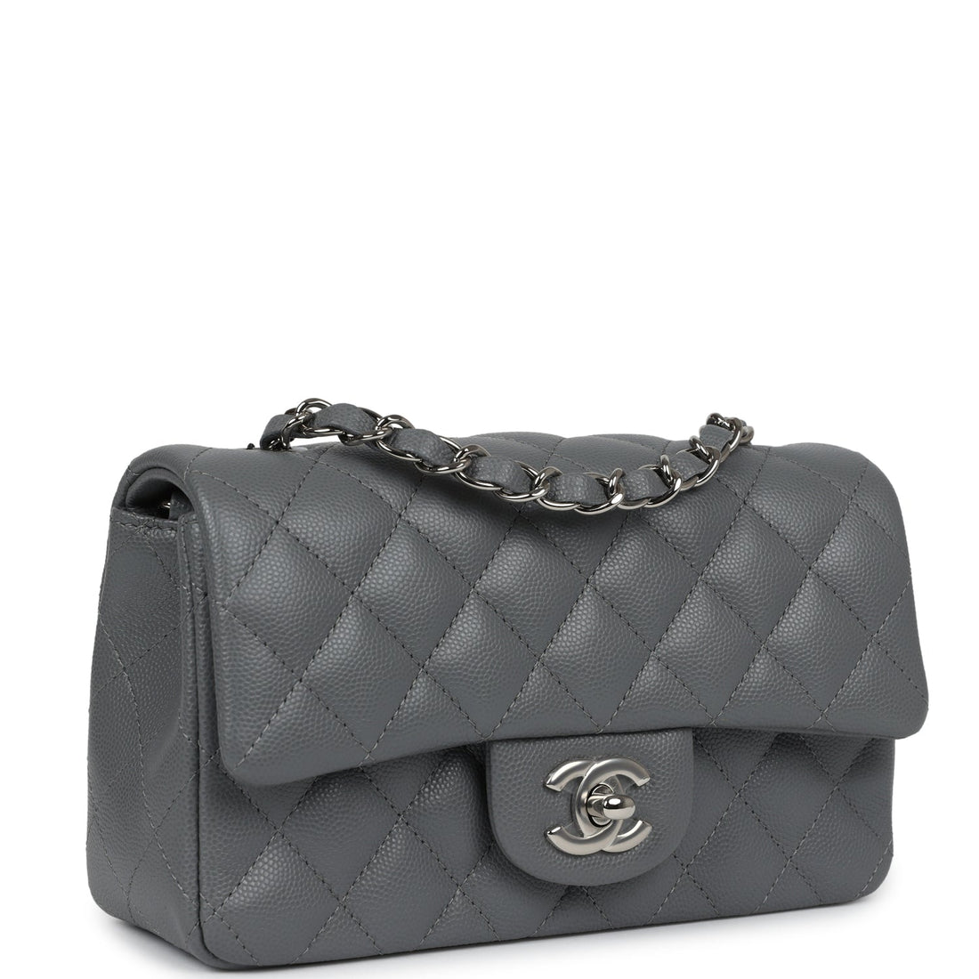 Chanel Mini Rectangular Flap Bag Dark Grey Caviar Silver Hardware