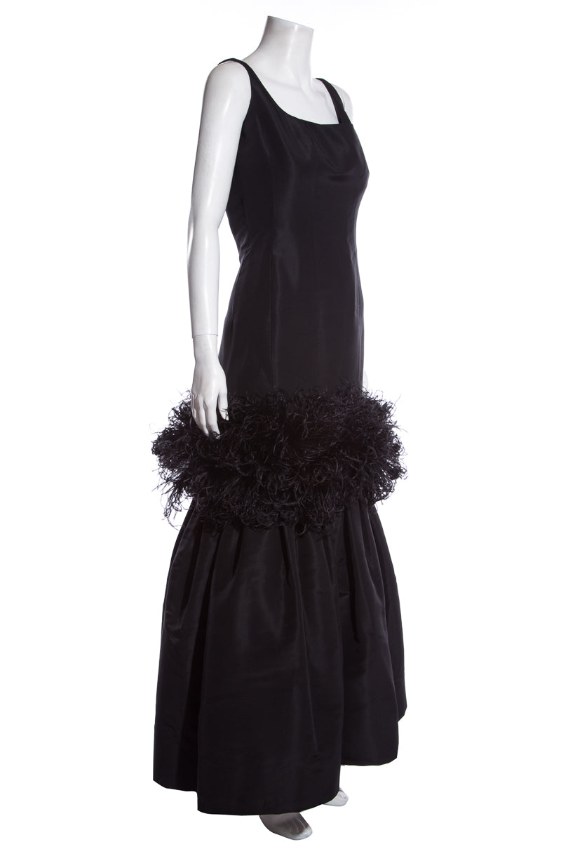 Oscar de la Renta Black Drop Waist Ostrich Feather Sleeveless Dress w/ concealed zipper at...