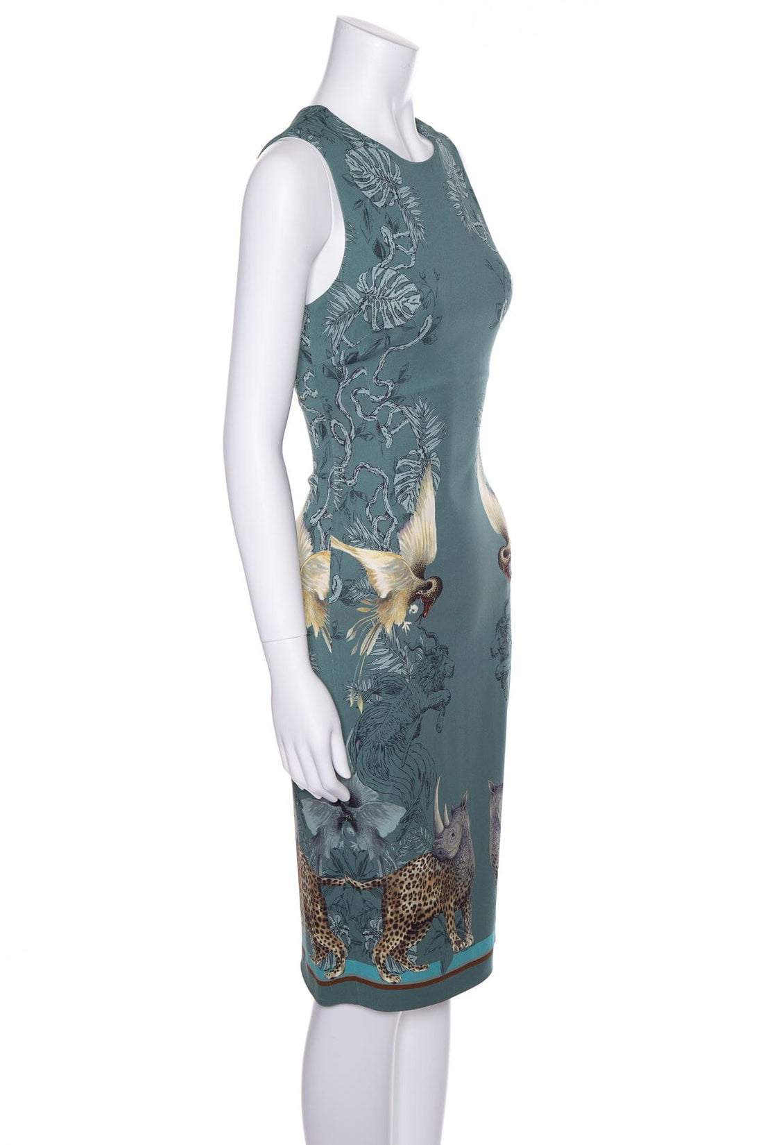 Roberto Cavalli Teal Sleeveless Exotic Animals Print Dress SZ 38