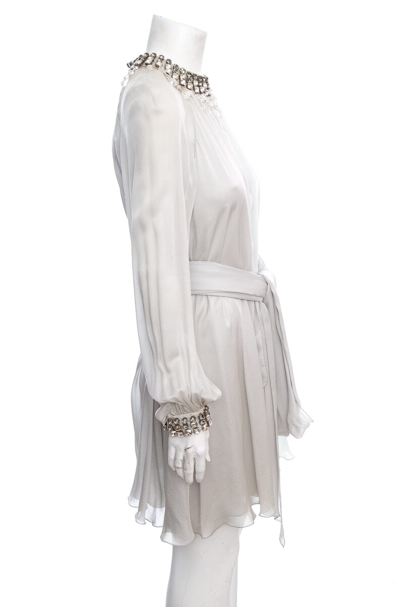 Azzaro Gray Chiffon Embellished Mock Neck L/S Dress w/ keyhole clasp for closure and slip...