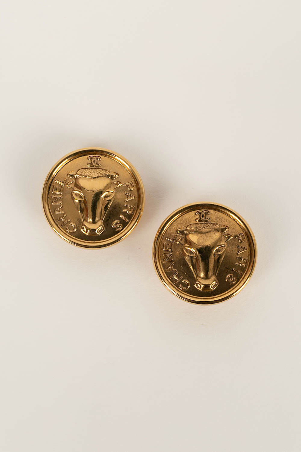 CHANEL -Boucles d'oreilles clips en m�tal dor� et bakelite. Condition : Tr�s bon �tat Dimensions...