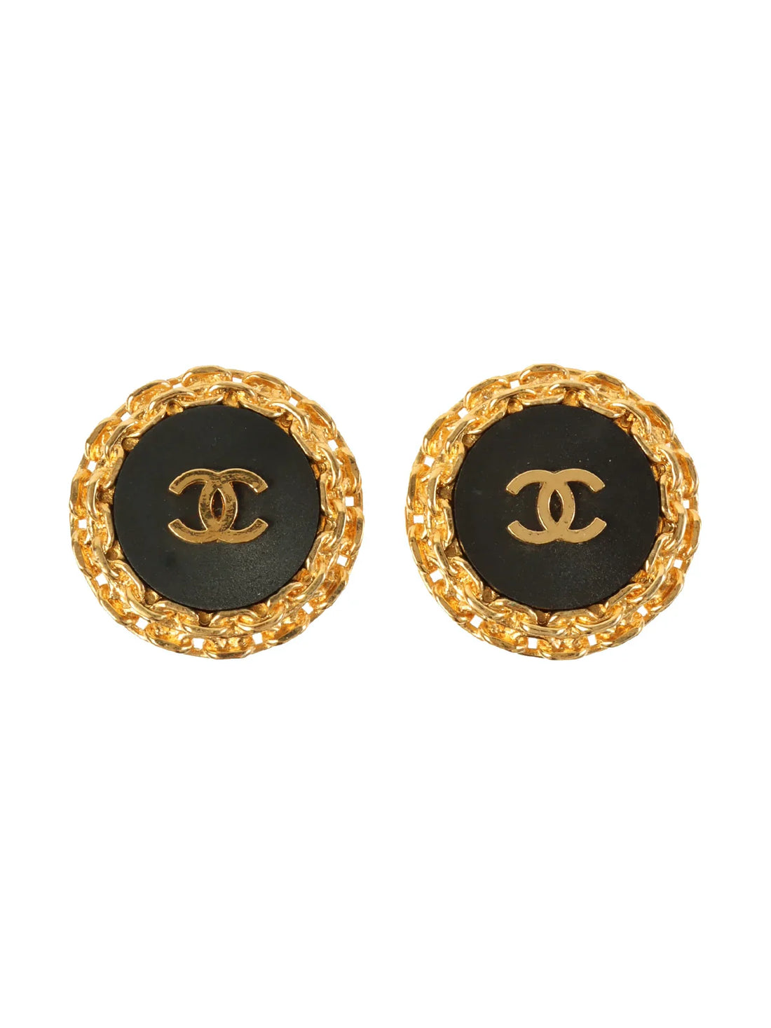 CHANEL 1992 Made Chain Motif Round Cc Mark Earrings Black/Gold