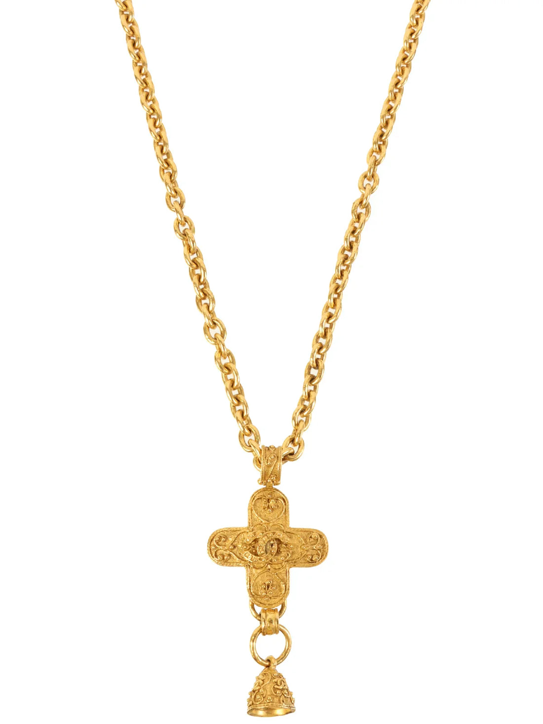 CHANEL 1994 Made Cross Bell Motif Dotted Cc Mark Long Necklace GoldMeasurements: Top H 9cm...