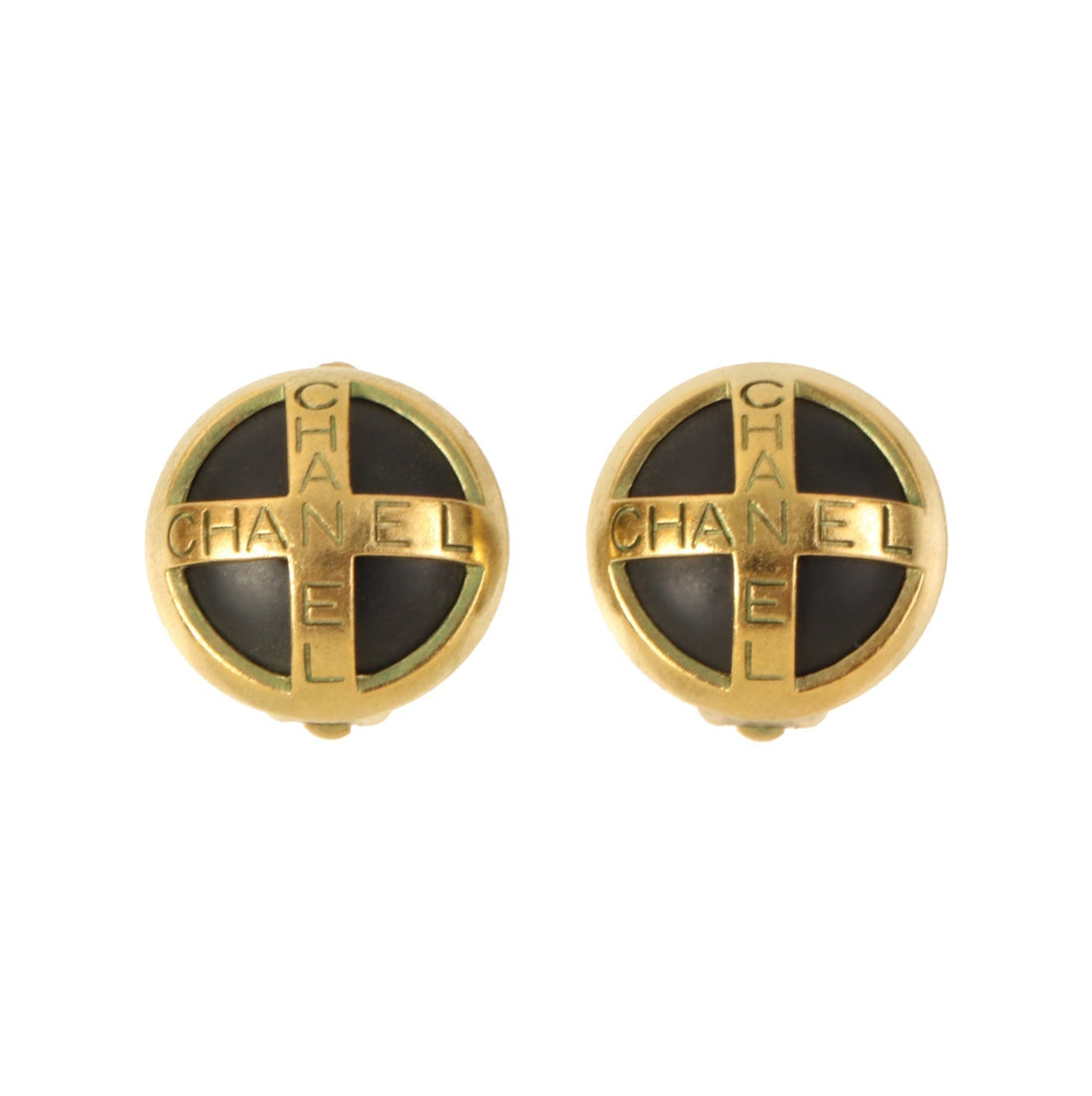 CHANEL 1994 Made Round Logo Earrings Black/Gold