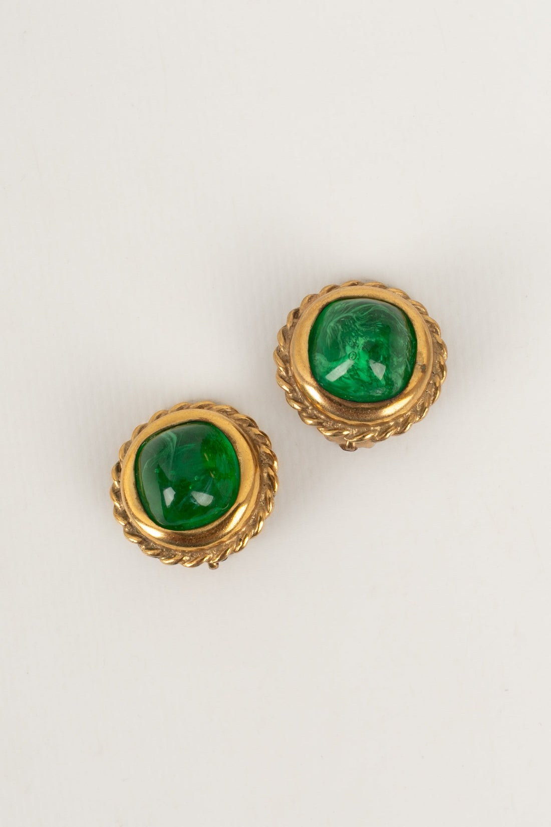 CHANEL - (Made in France) Boucles d'oreilles en métal doré et pâte de verre. Travail...