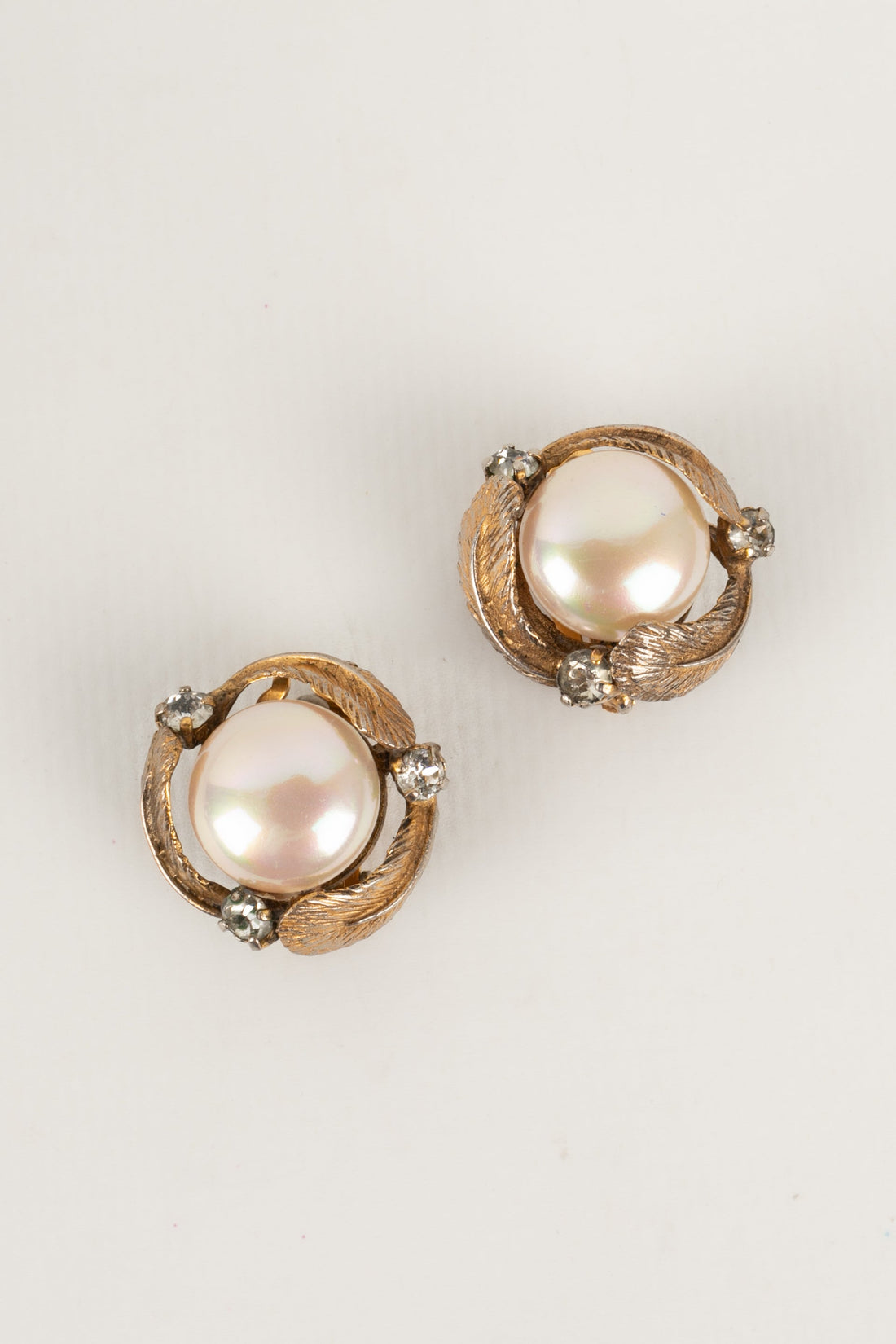 CHANEL - Boucles d'oreilles en métal doré et cabochon nacré fantaisie. Condition : Très bon...