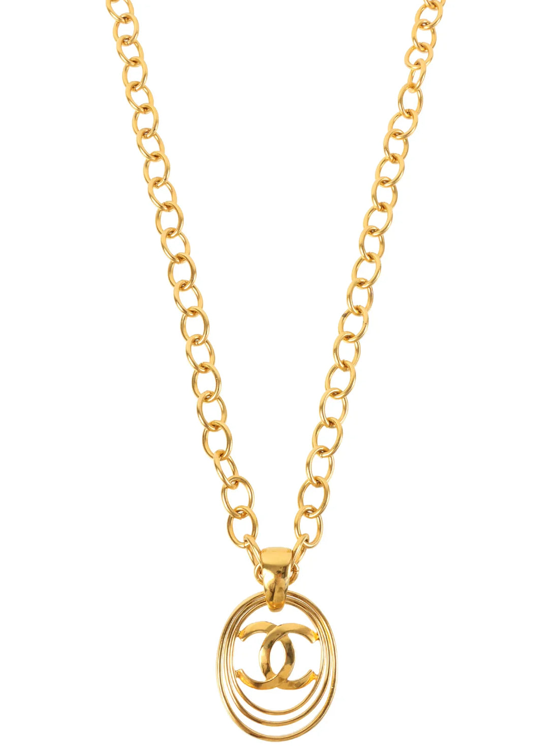 CHANEL 1995 Made Oval Cutout Cc Mark Plate Chain Long Necklace Gold