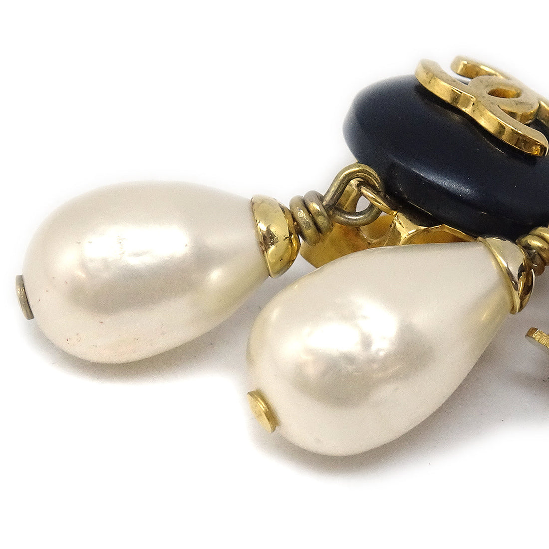 CHANEL 1996 Made Pearl Cc Mark Swing Earrings Black/White