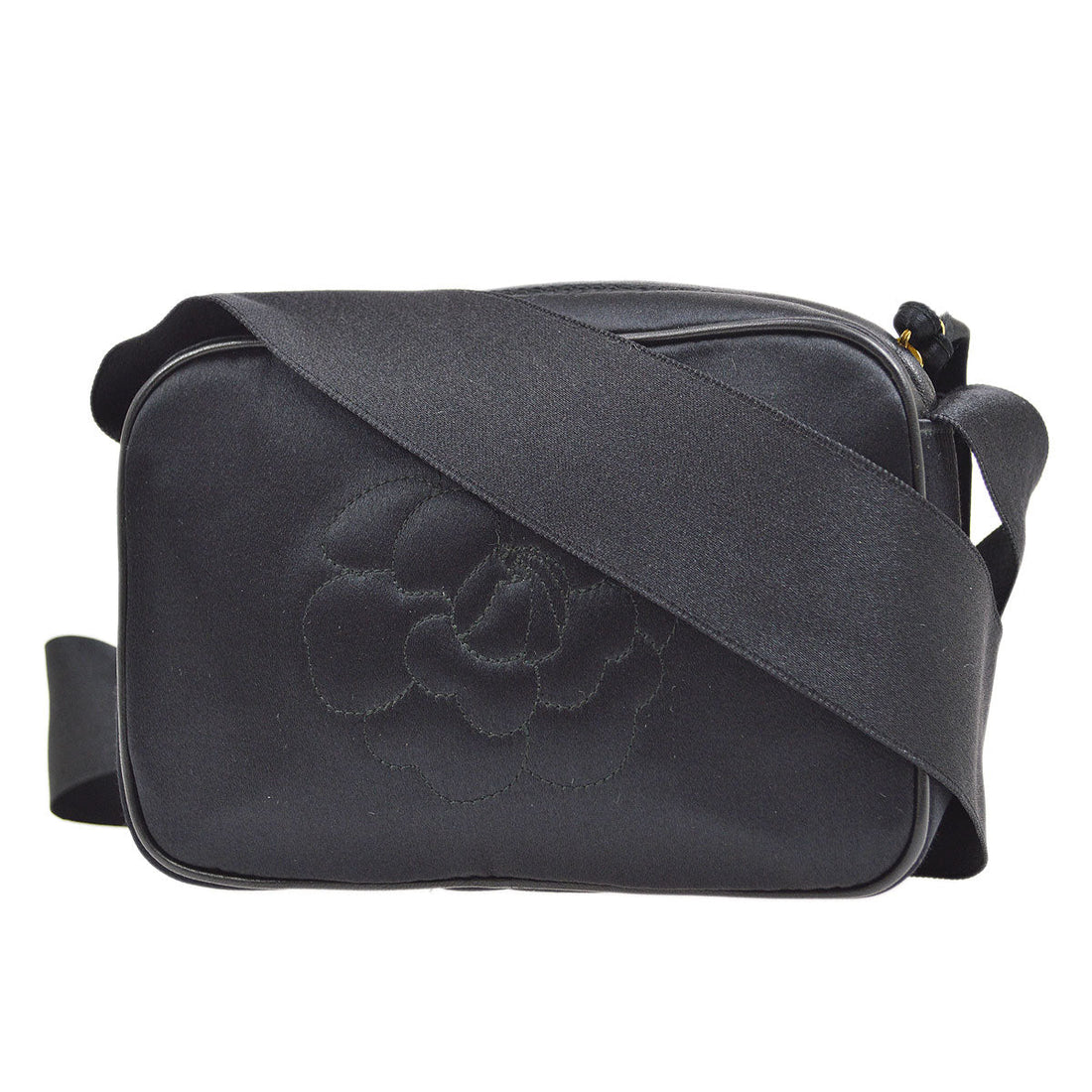 CHANEL 1996-1997 Camellia Stitched Bag Mini Black Satin 73509