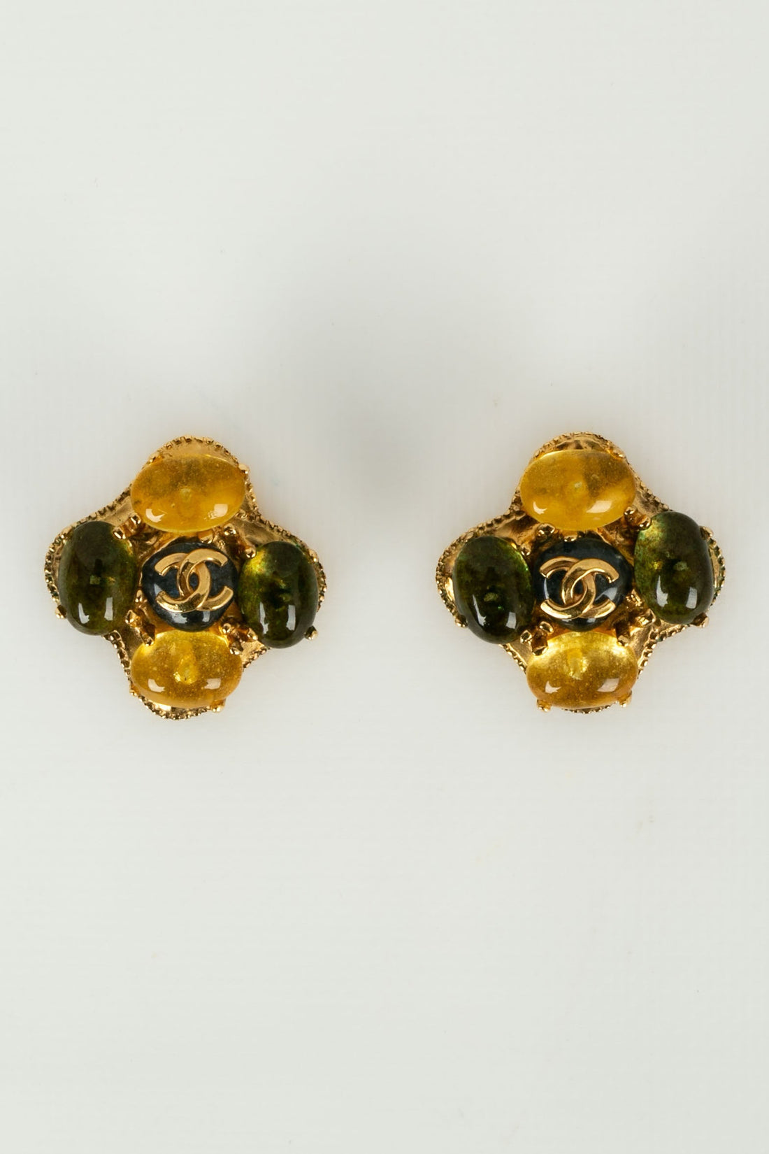 CHANEL - (Made in France) Boucles d'oreilles cc turnlock en métal doré pavé de strass...