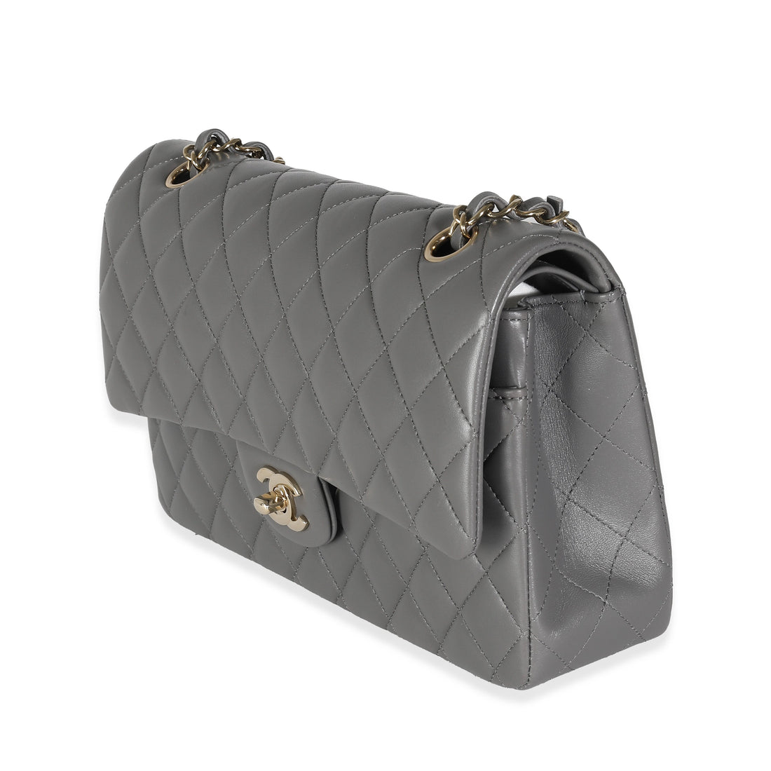 CHANEL 22A Grey Quilted Lambskin Medium Classic Double Flap Bag