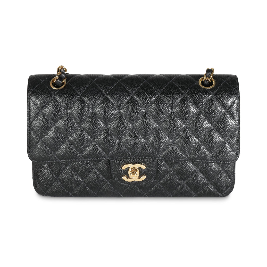 CHANEL 24K Black Quilted Caviar Medium Classic Double Flap Bag