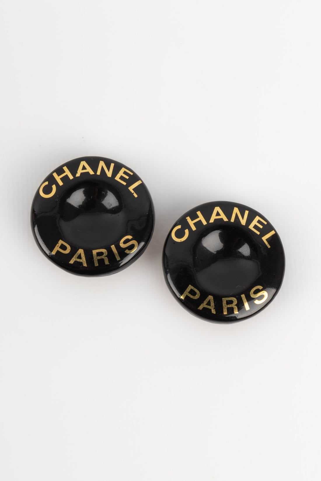 CHANEL - (Made in France) Boucles d'oreilles clips en métal doré. Collection Printemps-Eté 1996. Condition...