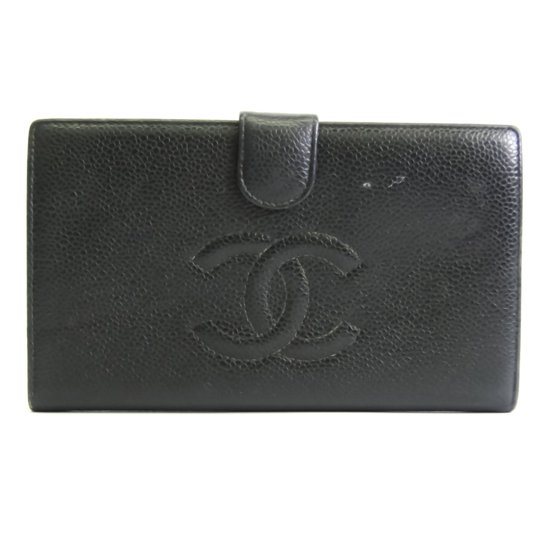 Chanel A13498 Women's Caviar Leather Long Wallet (bi-fold) Black