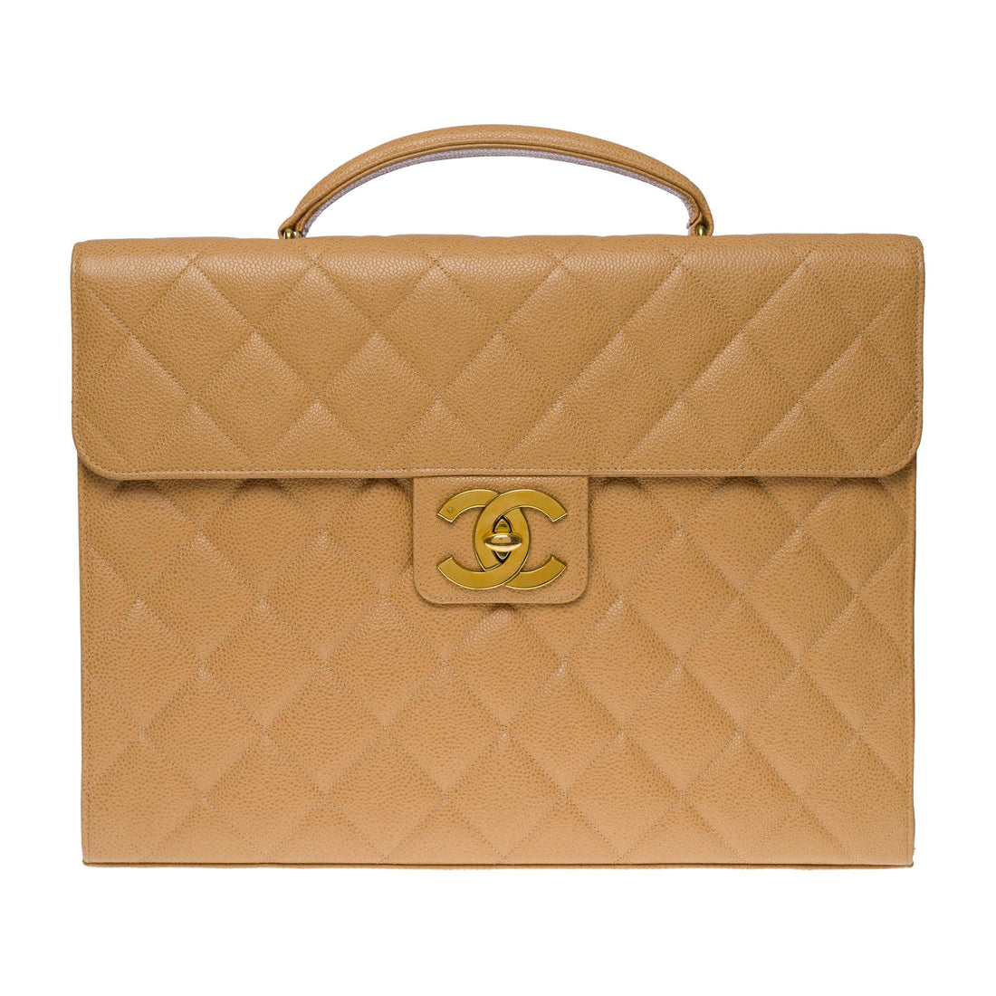 CHANEL Amazing vintage Briefcase in beige caviar leather, GHW