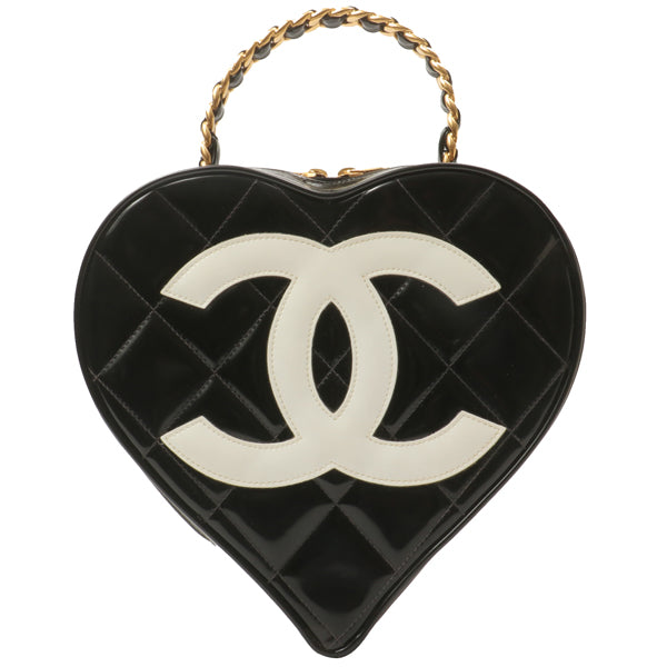 Chanel Around 1995 Made Patent Heart Cc Mark Stitch Vanity Black
