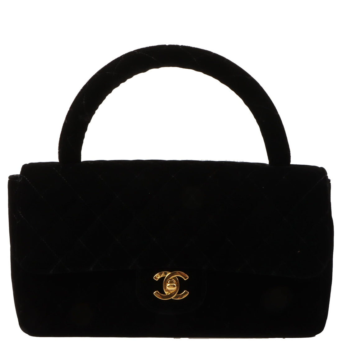 Chanel Around 1995 Made Velour Classic Flap Top Handle Bag Black