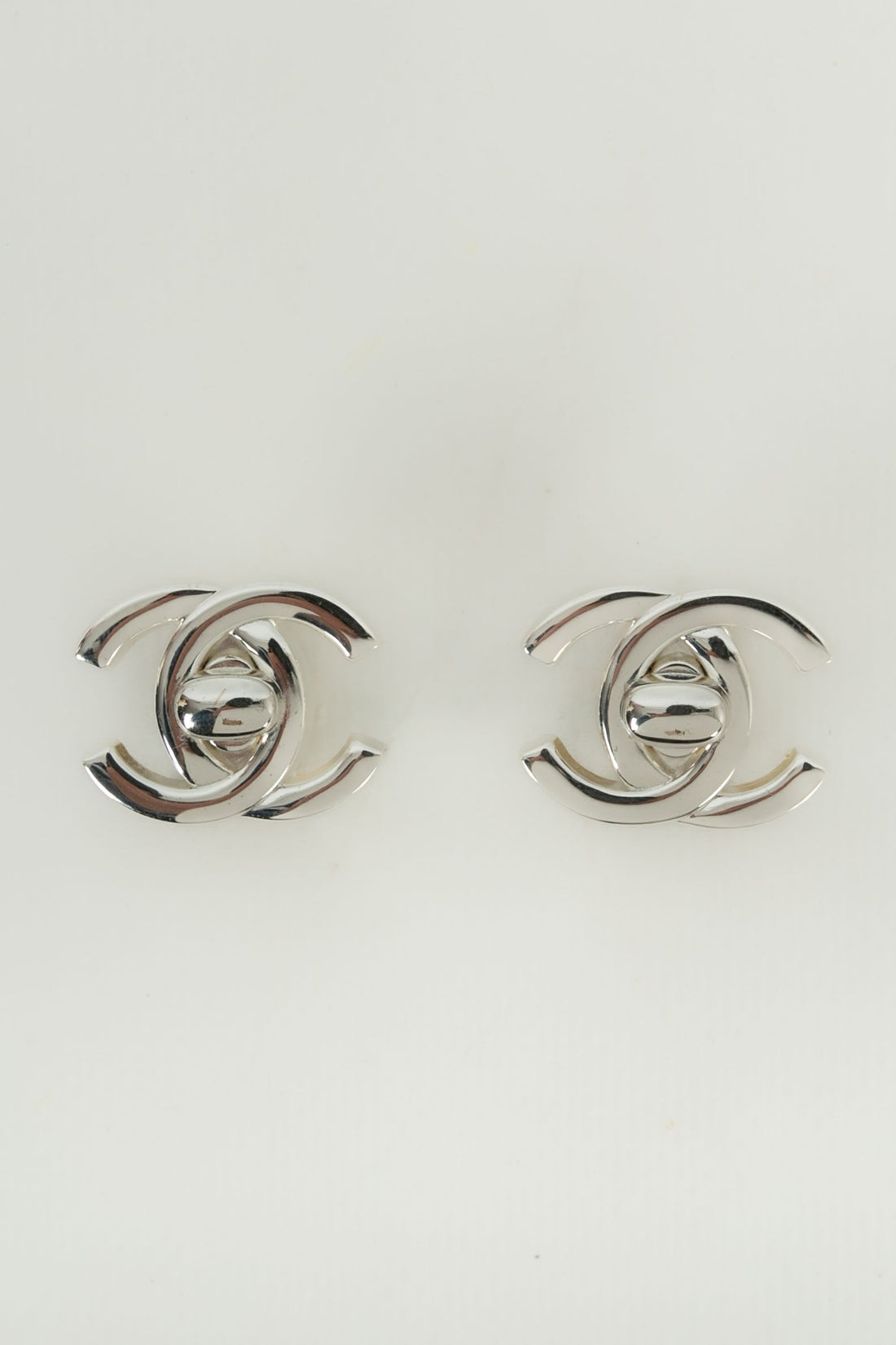 CHANEL - Boucles d'oreilles en métal argenté et pâte de verre. Bijoux des ateliers Gripoix...