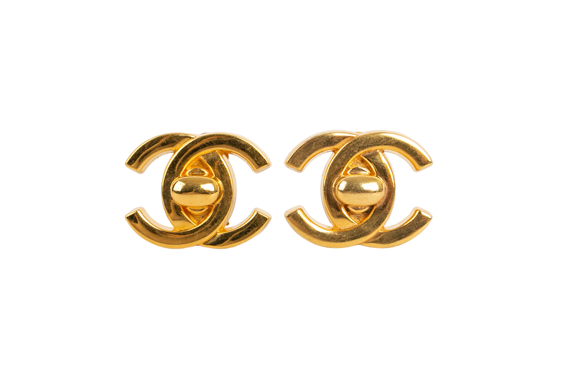 CHANEL - Boucles d'oreilles clips en m�tal dor� figurant un tr�fle a quatre feuilles. Condition...