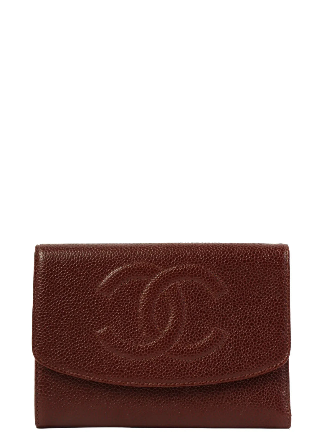 CHANEL Around 1998 Made Caivar Skin Cc Mark Stitch Wallet BrownMeasurements: H 11cm W 15cm...
