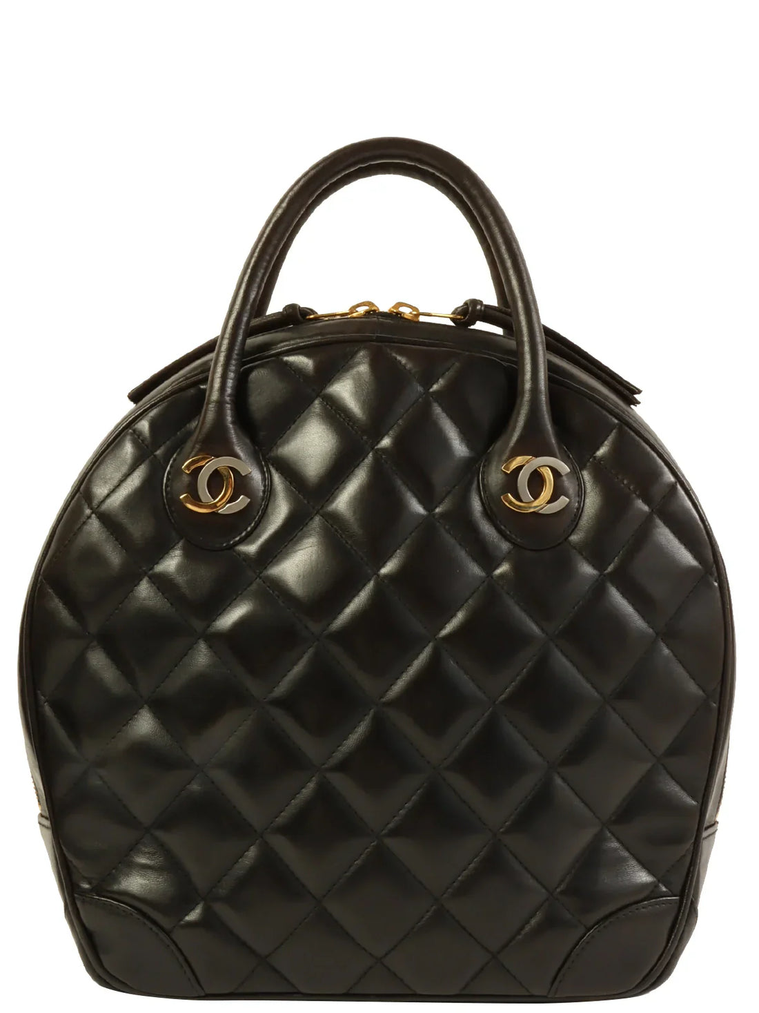 CHANEL Around 1998 Made Paris Limited Cc Mark Plate Top Handle Bag Black