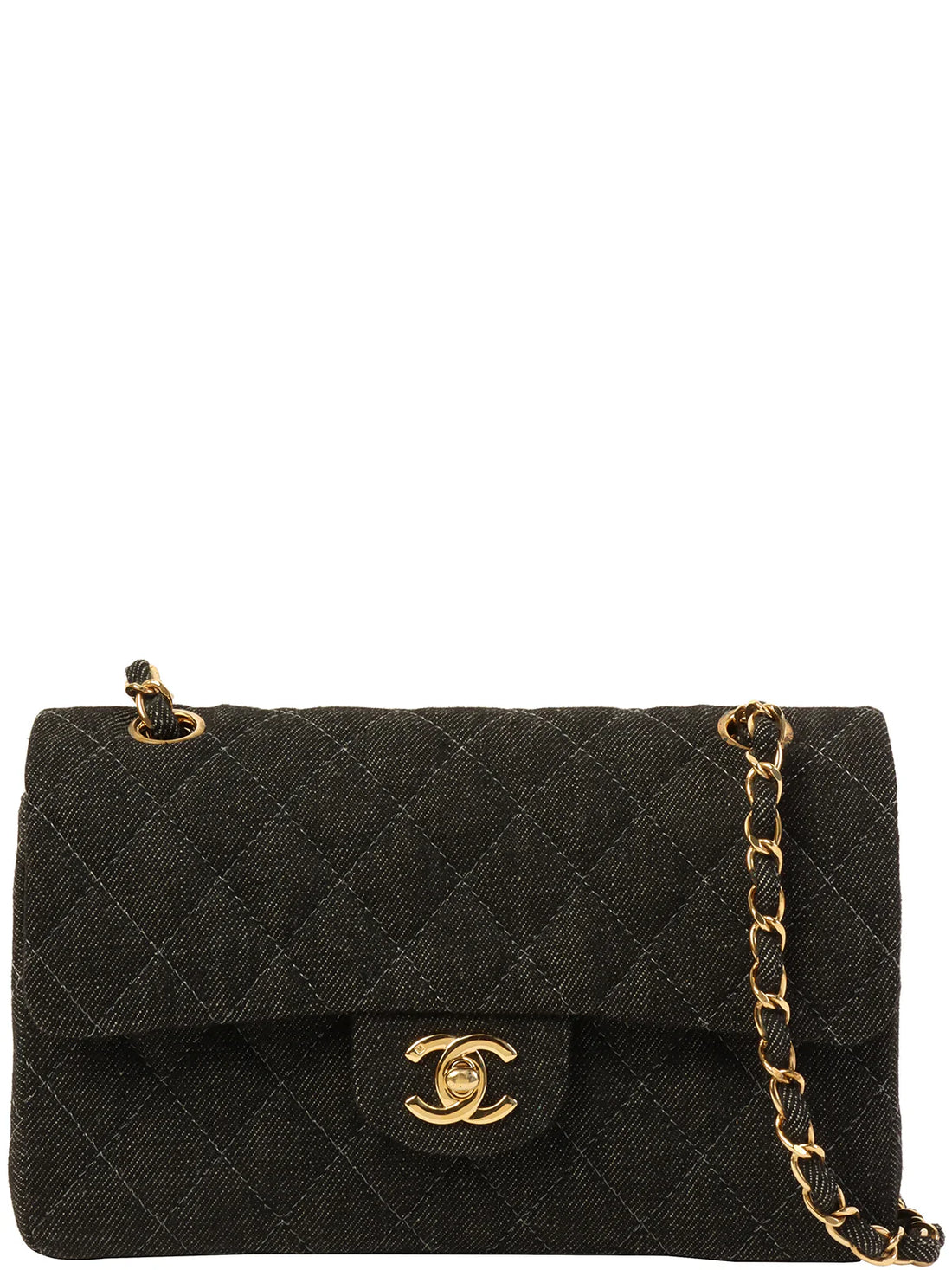 CHANEL Around 1998 Made Denim Classic Flap Chain Bag 23Cm BlackMeasurements: H 14cm W 23cm...