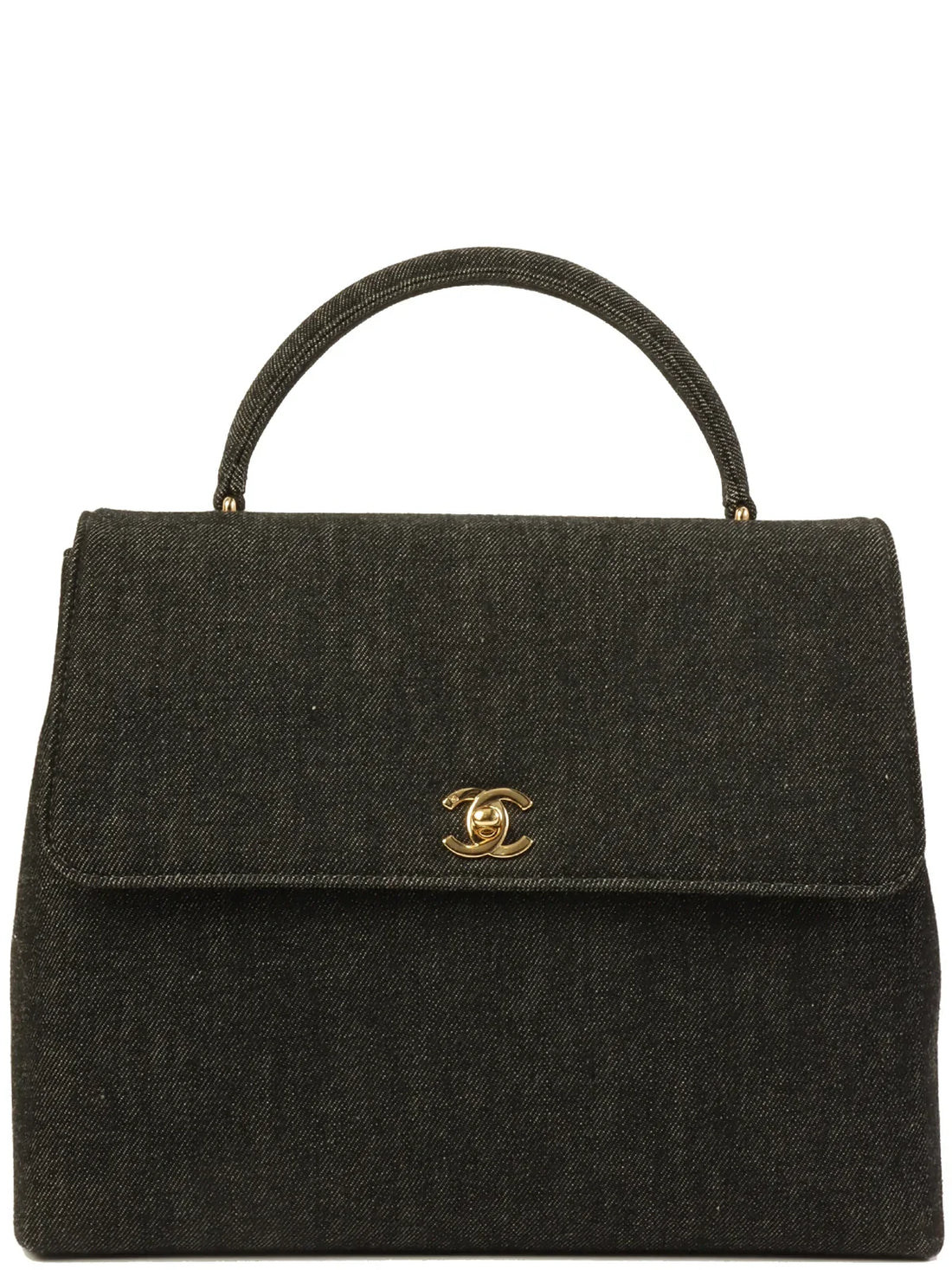 CHANEL Around 1998 Made Denim Turn-Lock Top Handle Bag BlackMeasurements: H 24cm W 30cm D...