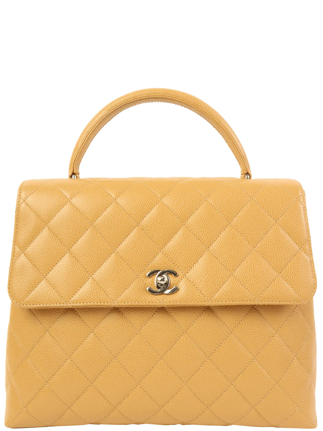 CHANEL Around 2000 Made Ciaviar Skin Stright Flap Turn-Lock Top Handle Bag BeigeMeasurements: H 24cm...