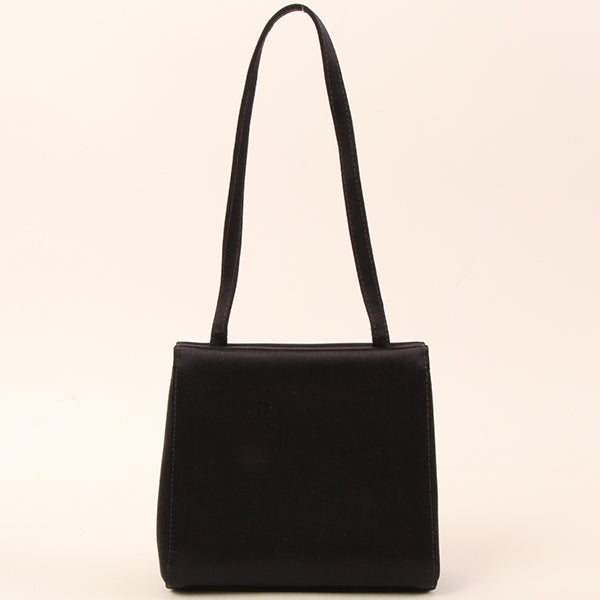 CHANEL Around 2000 Made Silk Satin Rhinestone Camellia Cc Mark Mini Top Handle Bag Black