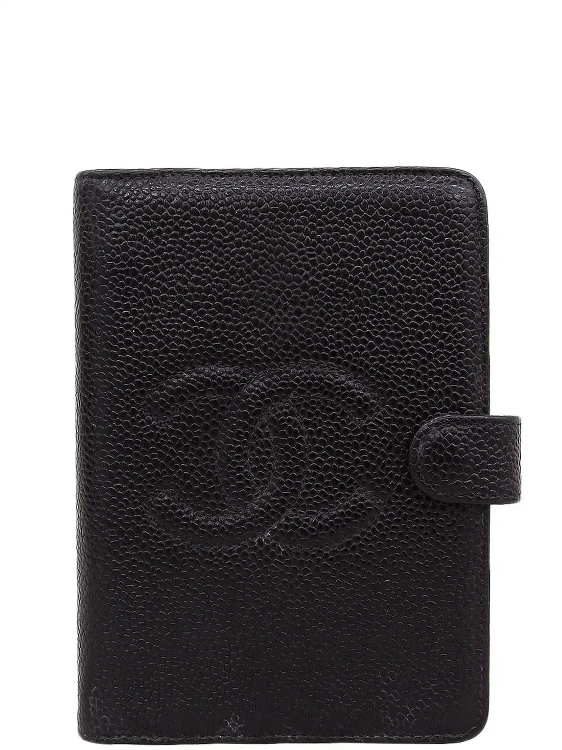 CHANEL Around 2001 Made Caviar Skin Cc Mark Stitch Agenda BlackMeasurements: H 14cm W 10cm...