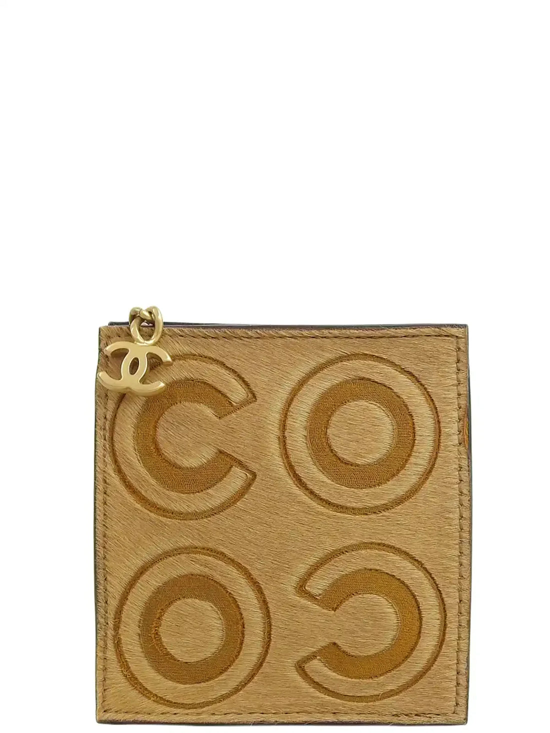 CHANEL Around 2000 Made Unborn Calf Embossed Cc Mark Charm Coin Case Beige/Purple