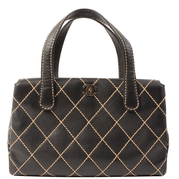 Chanel Around 2000 Made Wild Stitch Cc Mark Plate Top Handle Bag Black