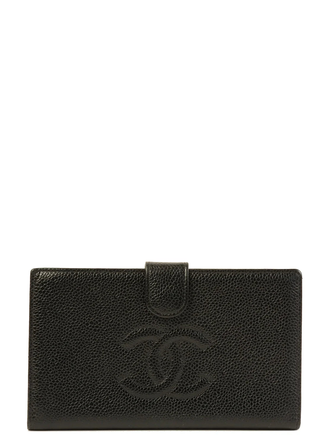 CHANEL Around 2001 Made Caviar Skin Cc Mark Stitch Long Wallet BlackMeasurements: H 10cm W...