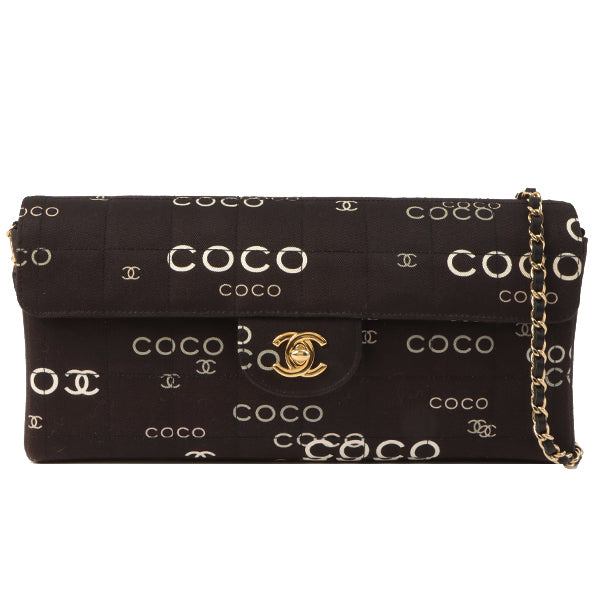 Chanel Around 2002 Made Cotton Logo Print Chocolate Bar Turn-Lock Chain Bag Black