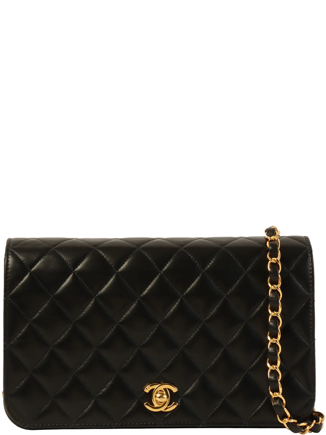 CHANEL Around 2004 Made Full Flap Turn-Lock Chain Bag BlackMeasurements: H 14cm W 23cm D...