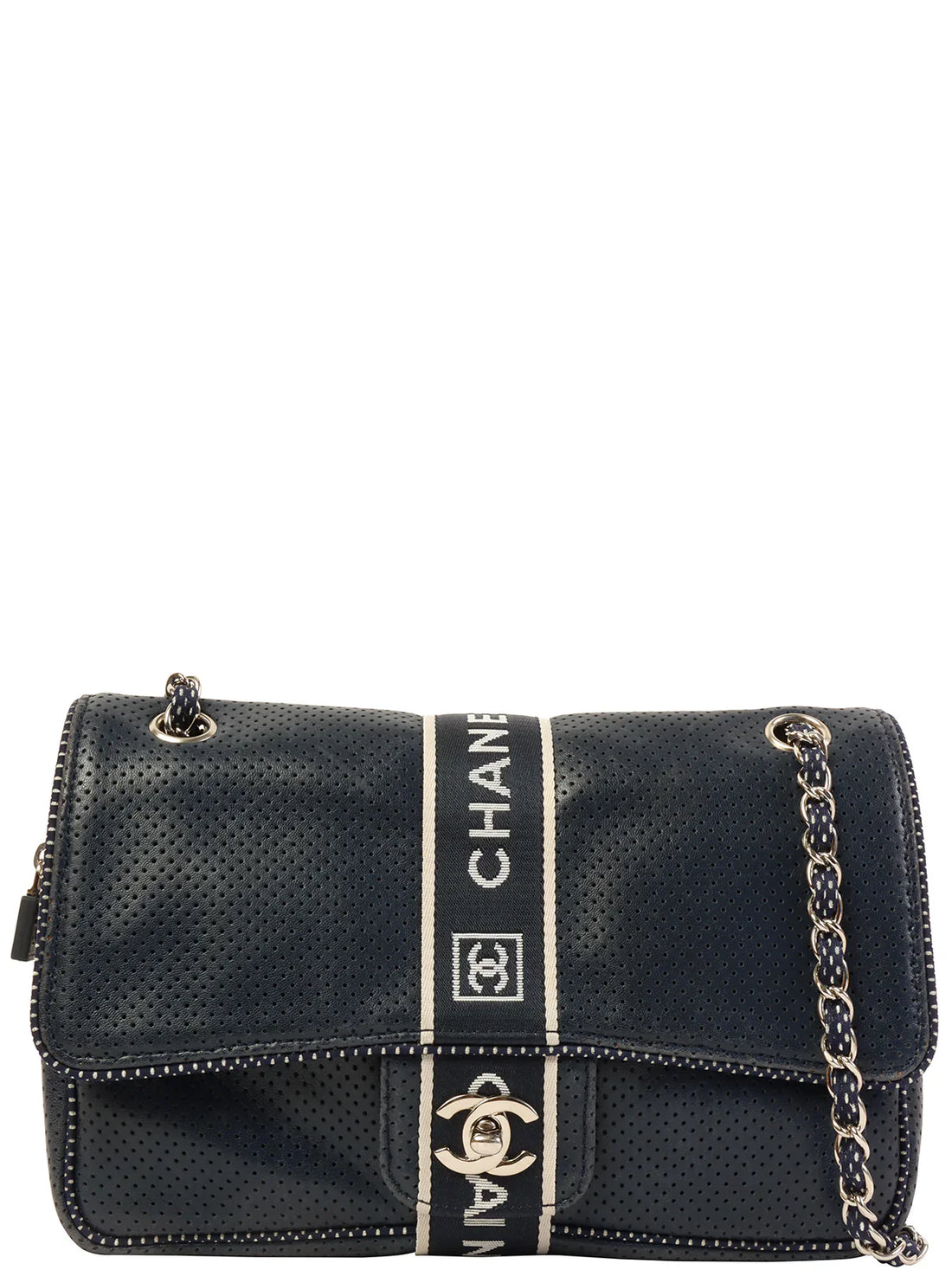 CHANEL Around 2004 Made Sport Line Punching Turn-Lock Chain Bag Navy/WhiteMeasurements: H 17cm W 25cm...