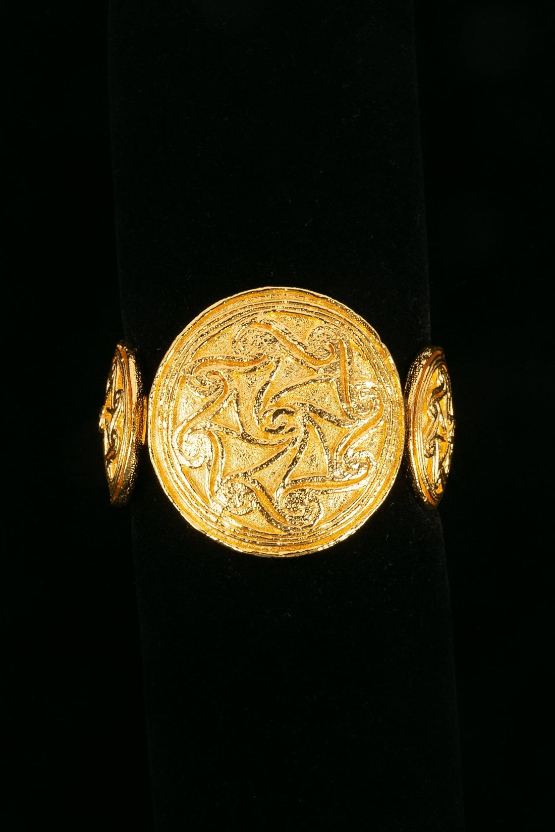 CHANEL -Bracelet en m�tal dor� et p�te de verre rouge. Collection 1985. Condition : Tr�s...