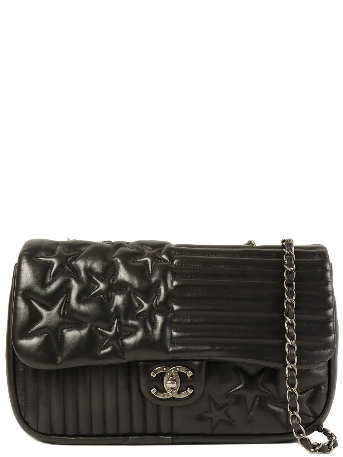 CHANEL Around 2014 Made Star Turn-Lock Chain Bag Black