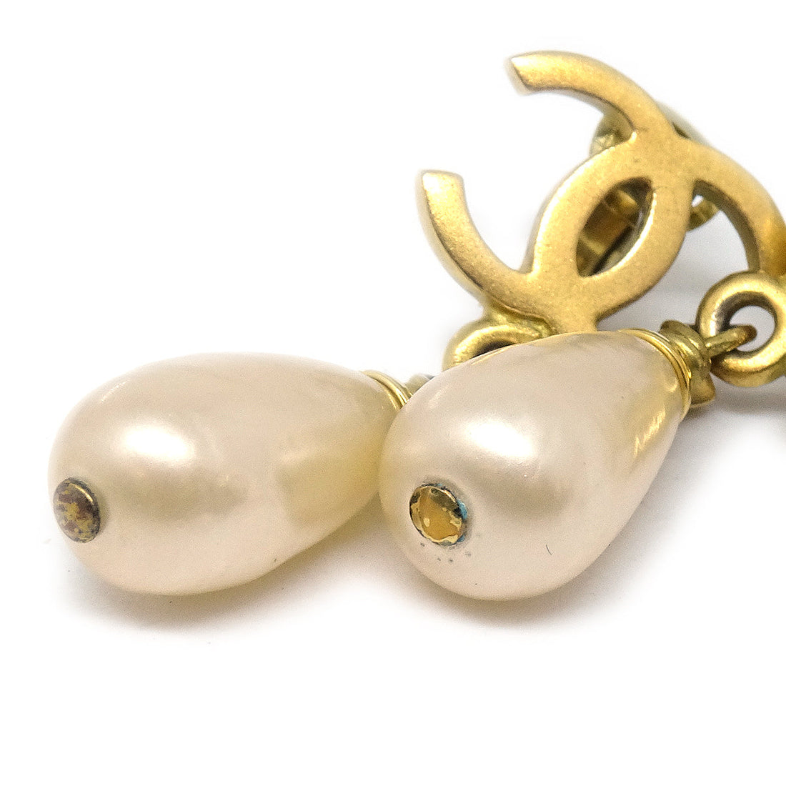 CHANEL Artificial Pearl Shaking Earrings Gold Clip-On 95P 78523