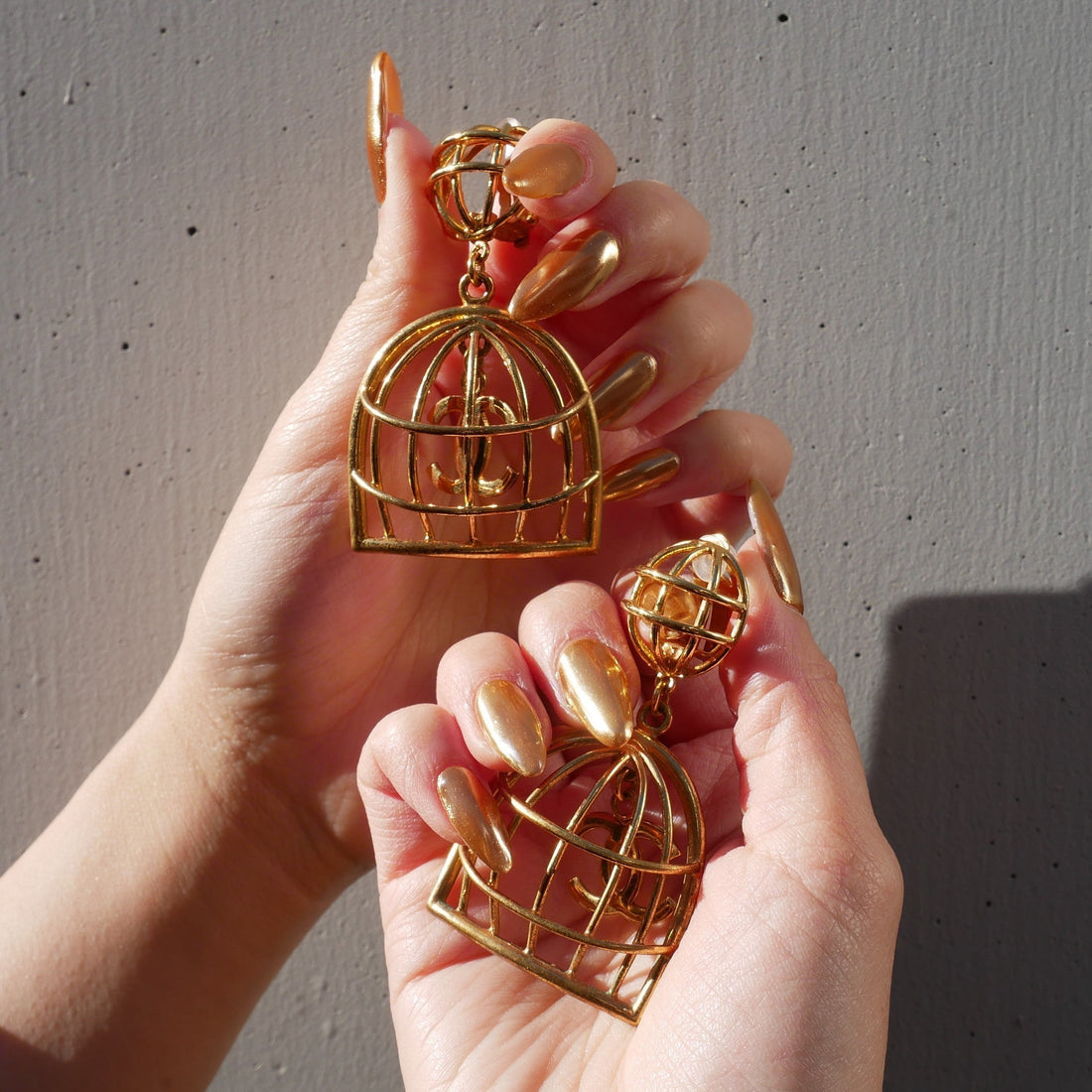 CHANEL Birdcage Earrings Gold Clip-On ao34148