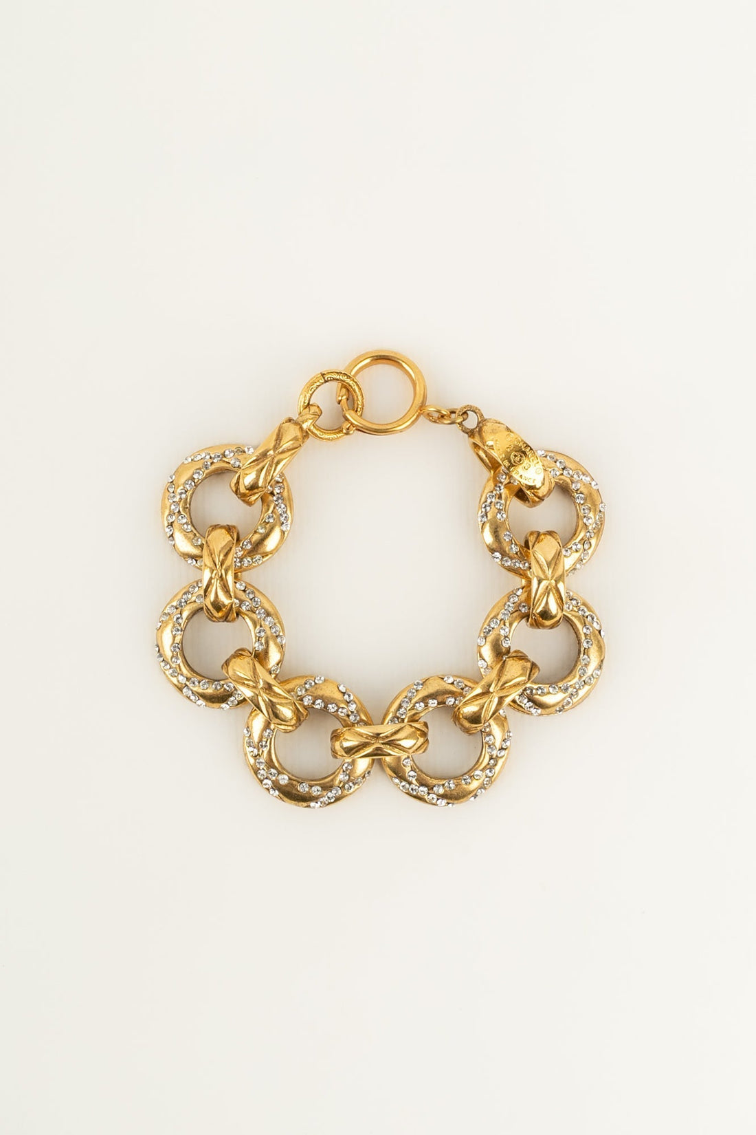 CHANEL - Bracelet manchette en m�tal dor� grav�. Bijou non sign�. Pr�sence de rayures sur...