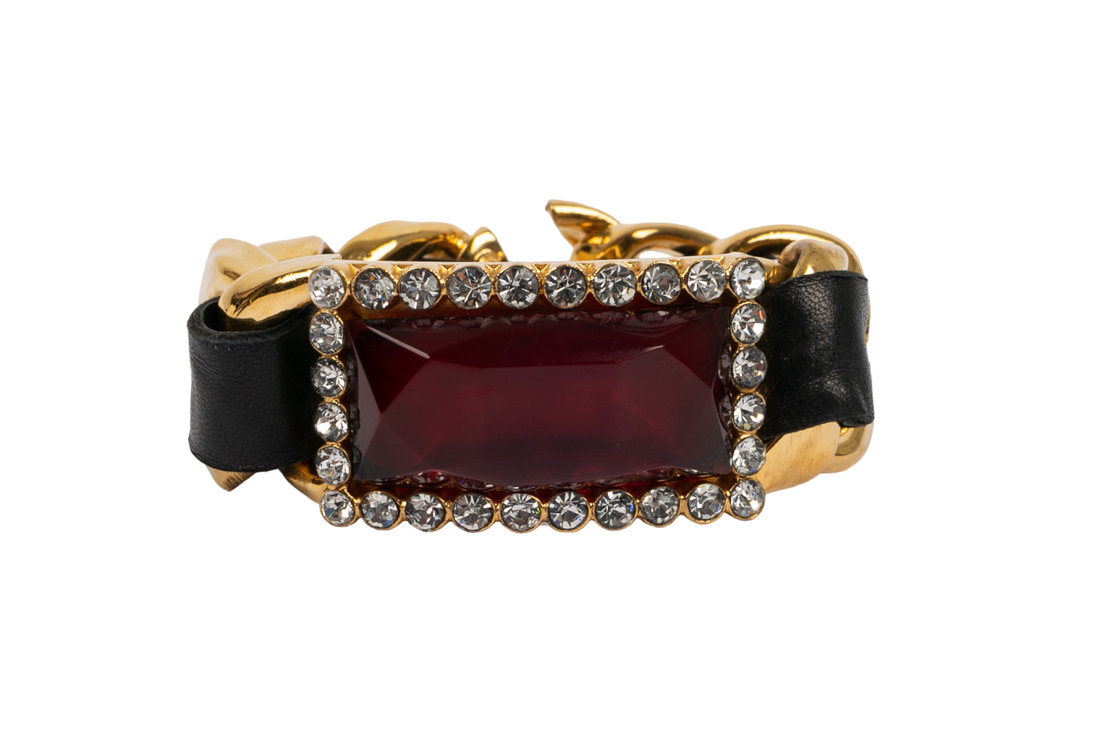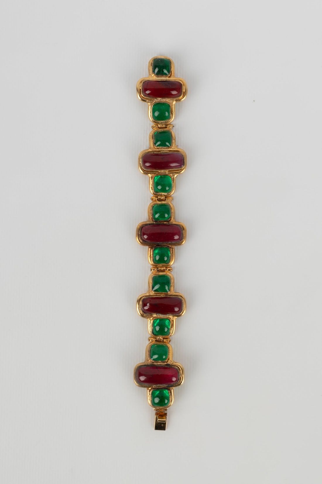 CHANEL - Bracelet en métal doré et pâte de verre. Travail de l'atelier Gripoix pour...